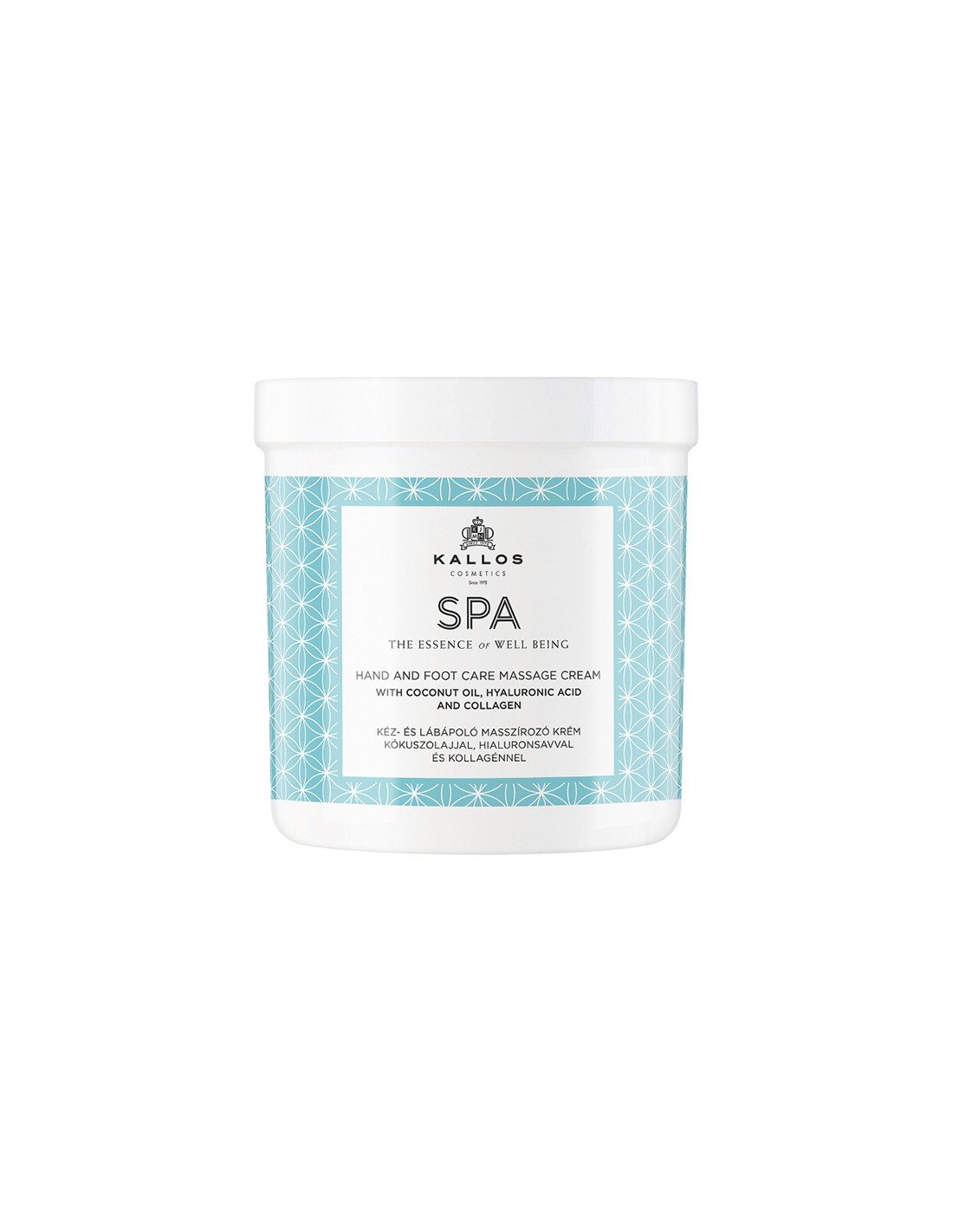 Koža ruku i stopala često je zanemarena, a ujedno je upravo ona izložena štetnim vanjskim utjecajima i nepredvidivim vremenskim prilikama. Međutim, Kallos Spa krema za ruke i noge pruža intenzivnu hranjivu njegu te isušenoj i ispucaloj koži pruža toliko potrebnu hidrataciju i omekšavanje. Prikladna je za revitalizirajuću masažu, koja kožu omekšava, zaglađuje i regenerira.