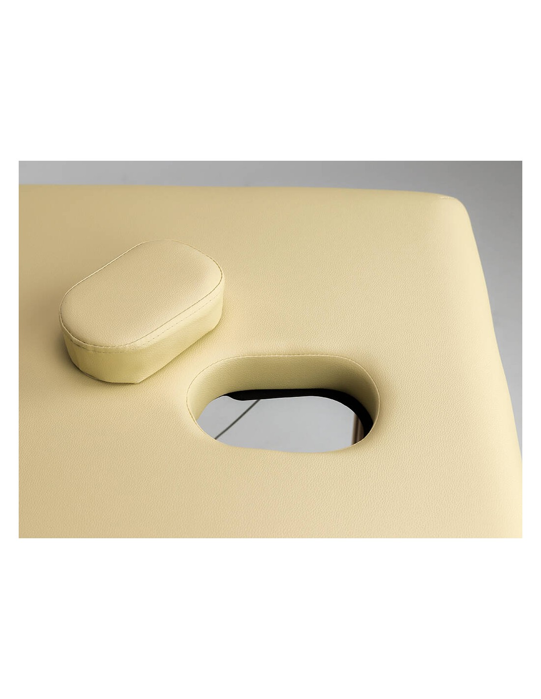 Dvosegmentni drveni stol za masažu. Udobna ploča stola, kompletna oprema i poseban dizajn nogu koji olakšavaju pristup pacijentu karakteristike su koje ovaj stol čine odličnim izborom za razne tehnike masaže, manualne terapije i kozmetičke zahvate. Model se odlikuje dvosegmentnom pločom stola s ugodnom pjenom od 5 cm, koja se sastoji od dva sloja različite tvrdoće. Prvi je mekani, debljine 4 cm, a drugi, malo tvrđi, debljine 1 cm. Zahvaljujući tome, stol nije samo izuzetno udoban za pacijenta, već i za terapeuta. Stol ima posebno oblikovan izrez u strukturi stola, što olakšava pristup pacijentu i rad u sjedećem položaju. Zahvaljujući tome, također je savršen za masažu lica ili kozmetičke postupke. Odličan izbor za one koji traže ekonomična, ali provjerena rješenja.