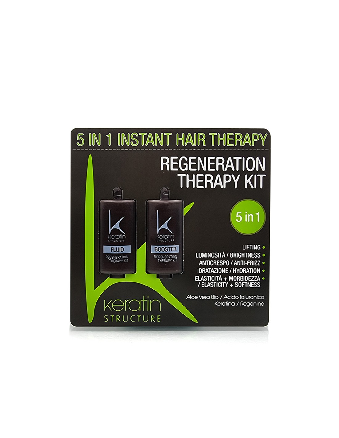 Obnavljajući ritual za sve tipove kose, s keratinom i hijaluronskom kiselinom, za učinak podizanja i maksimalnu zaštitu, s Regenine fito-kompleksom za sjaj kose i uklanjanje frizz-efekta, te aloe verom za savršenu hidrataciju, elastičnost i mekoću.