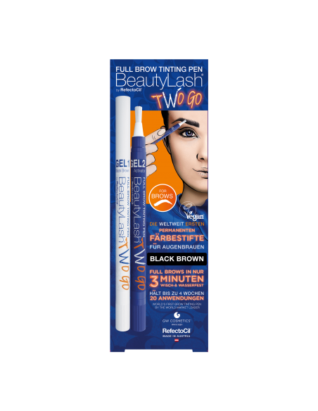 S BeautyLash® Full Brow Tinting Pen Two Go, postizanje savršeno definiranih obrva nikad nije bilo lakše. Izaberite Prirodnu smeđu za suptilan izgled ili Tamnu smeđu za dublje tonove kože – za savršen rezultat. Ovi inovativni flomasteri čine bojanje obrva jednostavnim. Nema miješanja – boja se nanosi u dva jednostavna koraka. Rezultat: obrve koje su otporne na razmazivanje i vodu te traju tjednima.