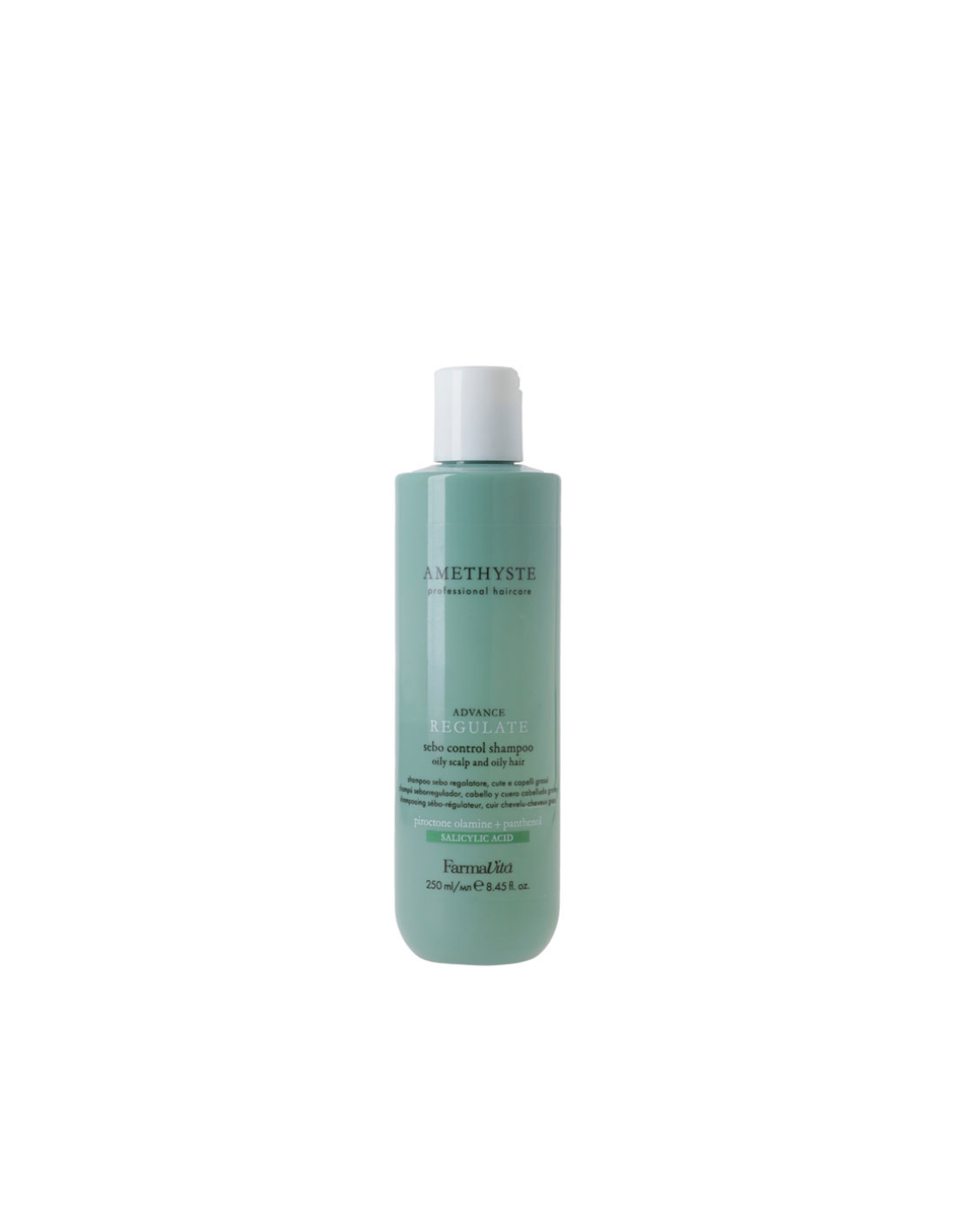 Uravnotežujući šampon za masno vlasište. Regulira prekomjerno lučenje sebuma, ostavljajući vlasište uravnoteženim, a kosu čistom i laganom. Obogaćen piroctone olaminom, pantenolom i salicilnom kiselinom. Način upotrebe: Nanesite na mokru kosu, nježno umasirajte i isperite.