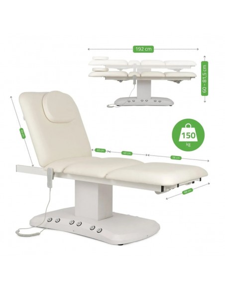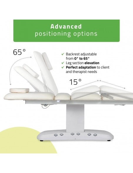 - Naslon podesiv do 65°: idealan za izvođenje kozmetičkih, fizioterapijskih i relaksacijskih tretmana.