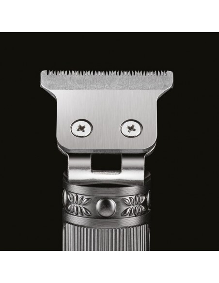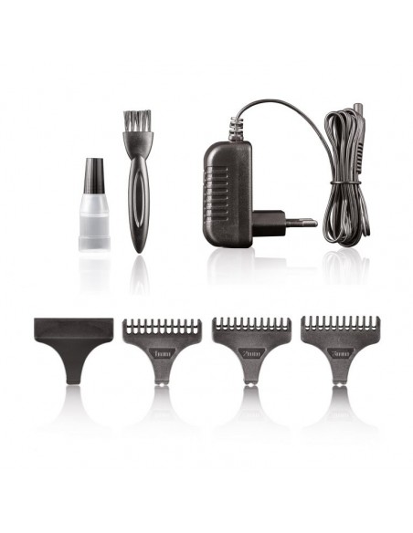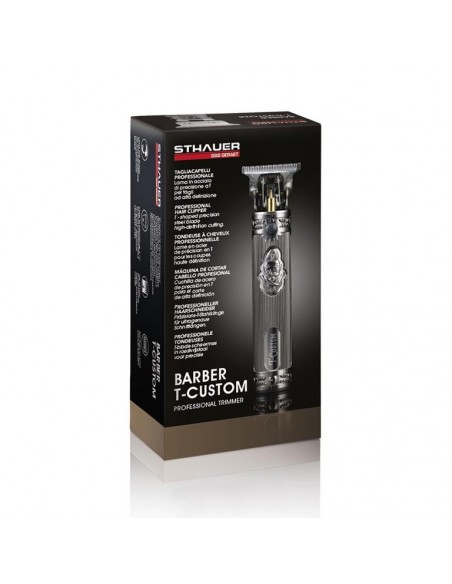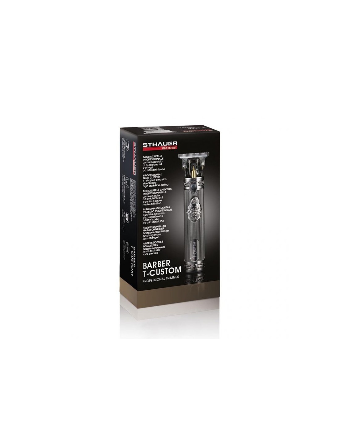 Idealan za precizne rezove, mali i okretni trimer za bradu T-Custom opremljen je visokokvalitetnim T-nožem od nehrđajućeg čelika. Podignuta glava posebno je dizajnirana za precizno šišanje i doradu, crtanje ili obrubljivanje brade i kose. Precizna čelična oštrica u obliku slova T namijenjena je za rezove visoke razlučivosti. 10 W. 100-240V ~ 50 / 60Hz. Težina: 204g.