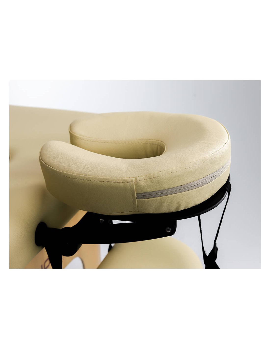 Univerzalni prijenosni masažni stol drvene konstrukcije, kompletno opremljen torbom za nošenje i priborom. Model se odlikuje dvosegmentnom pločom stola s ugodnom pjenom od 5 cm, koja se sastoji od dva sloja različite tvrdoće. Prvi je mekani, debljine 4 cm, a drugi, malo tvrđi, debljine 1 cm. Zahvaljujući tome, stol nije samo izuzetno udoban za pacijenta, već i za terapeuta. Stol ima posebno oblikovan izrez u strukturi stola, što olakšava pristup pacijentu i rad u sjedećem položaju. Zahvaljujući tome, također je savršen za masažu lica ili kozmetičke postupke. Odličan izbor za one koji traže ekonomična, ali provjerena rješenja.