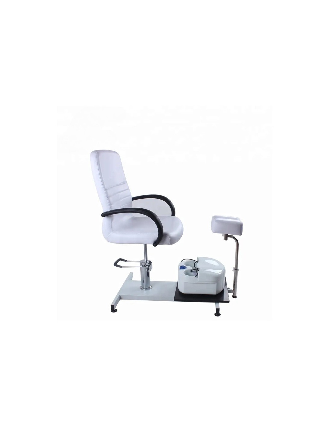 Pedikerska stolica za što udobniji tretman klijentu i olakšan rad kozmetičaru. Stolica i držač za nogu su podesive visine. Dimenzije 110 x 60 x h 54-70 cm.